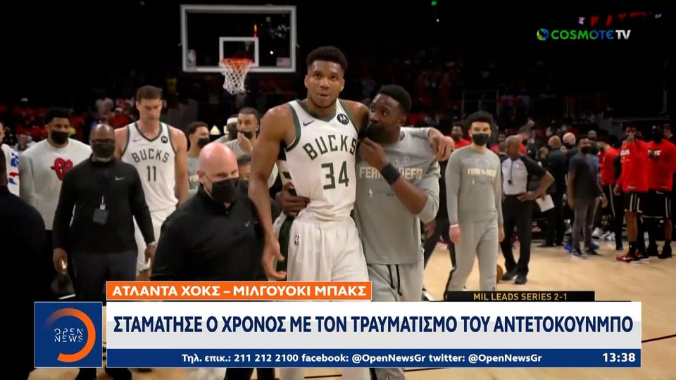 Αγωνία για τον γιάννη αντετοκούνμπο ο οποίος τραυματίστηκε κατά τον αγώνα του game 4 με τους χοκς.